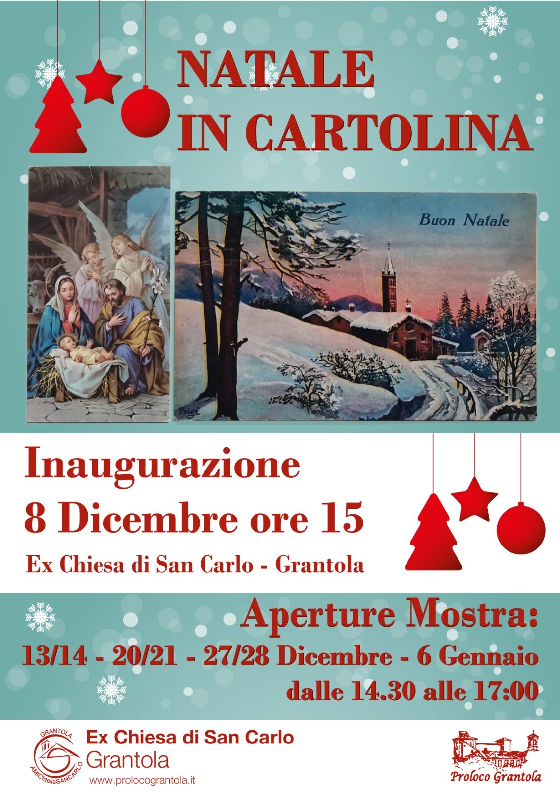 Pro Loco Grantola e Amici della San Carlo invitano i gentili cittadini a visitare la mostra che si terrà presso l'ex Chiesa di San Carlo a partire dal giorno 8 dicembre. Si prega di prendere visione del volantino allegato con l'indicazione delle date e degli orari di apertura.